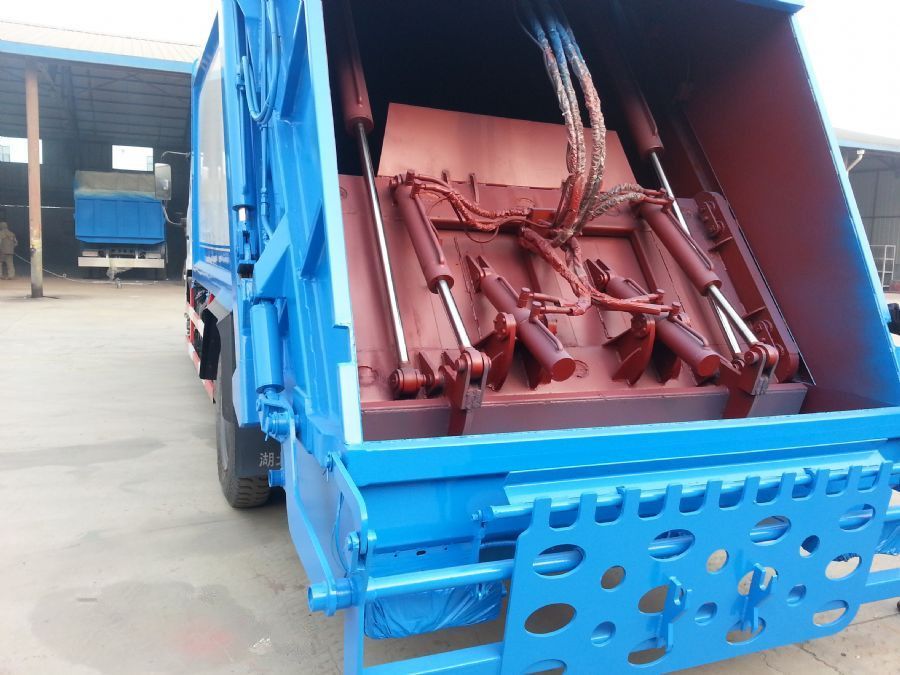 專用部分介紹上裝部分由密封式垃圾廂、裝填器、推鏟、液壓傳動系統和電氣控制系統組成。 工作原理及特點描述 整車為全密封型,采用電液一體化技術,借助機、電、液聯合自動控制系統,通過車廂、填裝器和推鏟等專用裝置,實現垃圾倒入、壓碎或壓扁、強力裝填,把垃圾擠入車廂并壓實和推卸。壓縮過程中的污水全部進入污水廂,較為徹底的解決了垃圾運輸過程中的二次污染的問題。