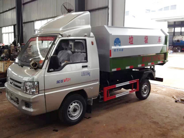 工作原理:自裝卸式垃圾車是由密封式垃圾廂、液壓系統、操作系統組成,能配幾十個垃圾桶,實現一車與多個垃圾桶聯合作業,廂體上的液壓升降裝置可將垃圾桶吊上、放下,上下升降,上下一次工作循環時間為50S,密封式廂體環保衛生,可避免二次污染。其自裝式的掛桶裝置可直接將路邊的垃圾桶掛在上面用提升機直接到在垃圾箱體里面省去了裝垃圾的麻煩。