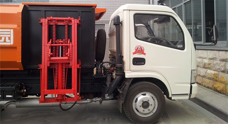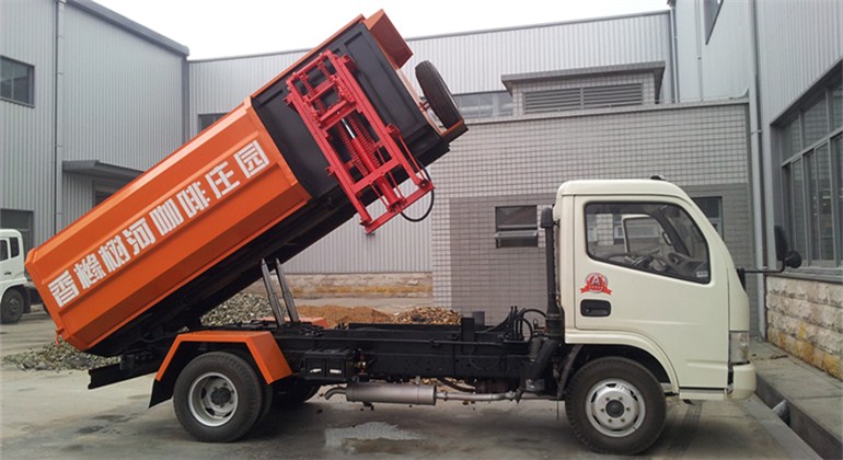 工作原理:自裝卸式垃圾車(chē)是由密封式垃圾廂、液壓系統(tǒng)、操作系統(tǒng)組成,能配幾十個(gè)垃圾桶,實(shí)現(xiàn)一車(chē)與多個(gè)垃圾桶聯(lián)合作業(yè),廂體上的液壓升降裝置可將垃圾桶吊上、放下,上下升降,上下一次工作循環(huán)時(shí)間為50S,密封式廂體環(huán)保衛(wèi)生,可避免二次污染。其自裝式的掛桶裝置可直接將路邊的垃圾桶掛在上面用提升機(jī)直接到在垃圾箱體里面省去了裝垃圾的麻煩。