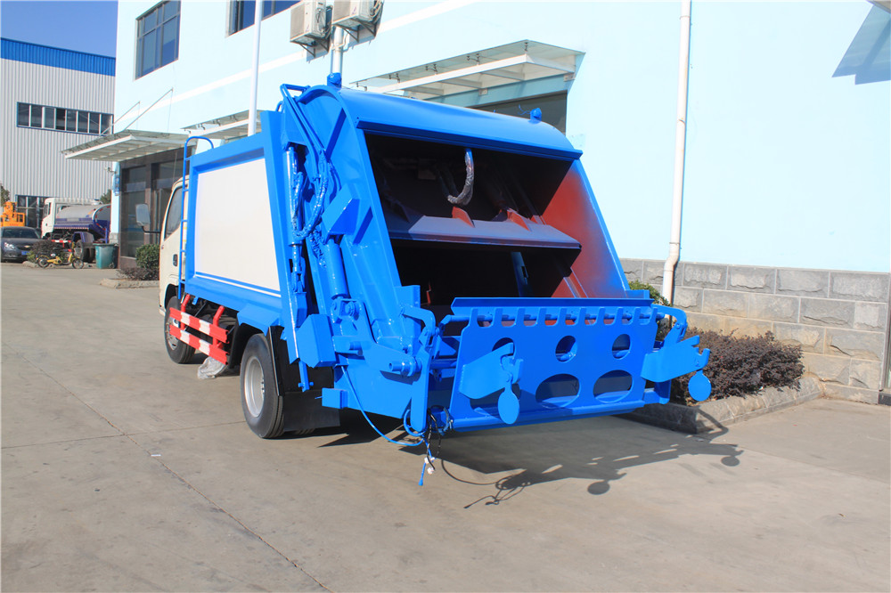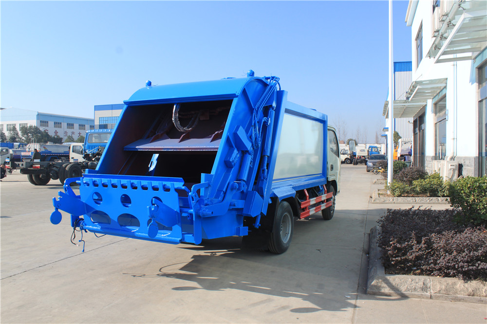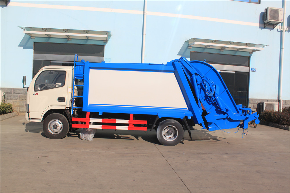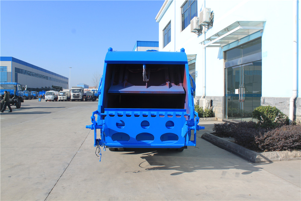 東風銳鈴壓縮式垃圾車上裝配置:有效壓縮容積5方,可裝4-5噸生活垃圾,壓縮倍率3-4倍,壓縮后生活垃圾密度從0.36變?yōu)?.95以上,帶污水收集箱,新款平板式箱體更美觀,尾部 帶密封橡膠墊,可防污水滴漏二次污染。尾部可帶翻轉斗或掛桶裝置,可選裝PLC一鍵操控系統(tǒng),駕駛室和尾部雙操控機構。